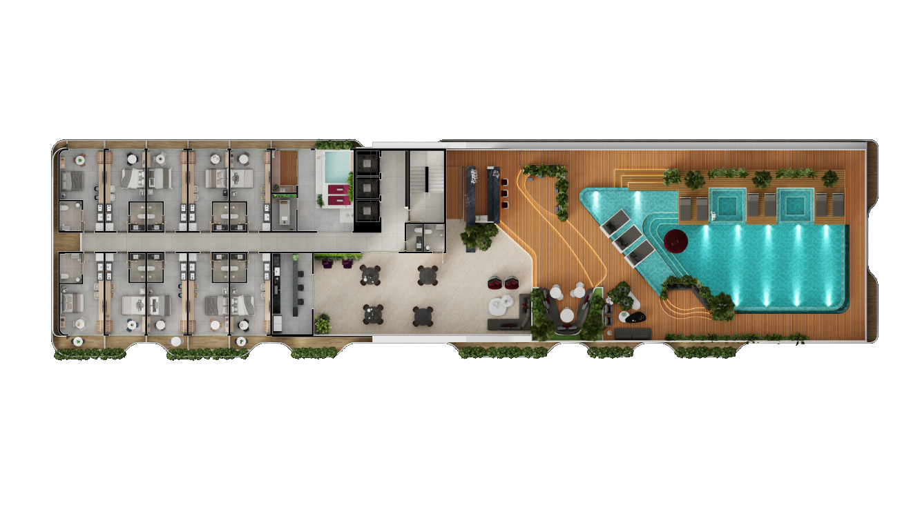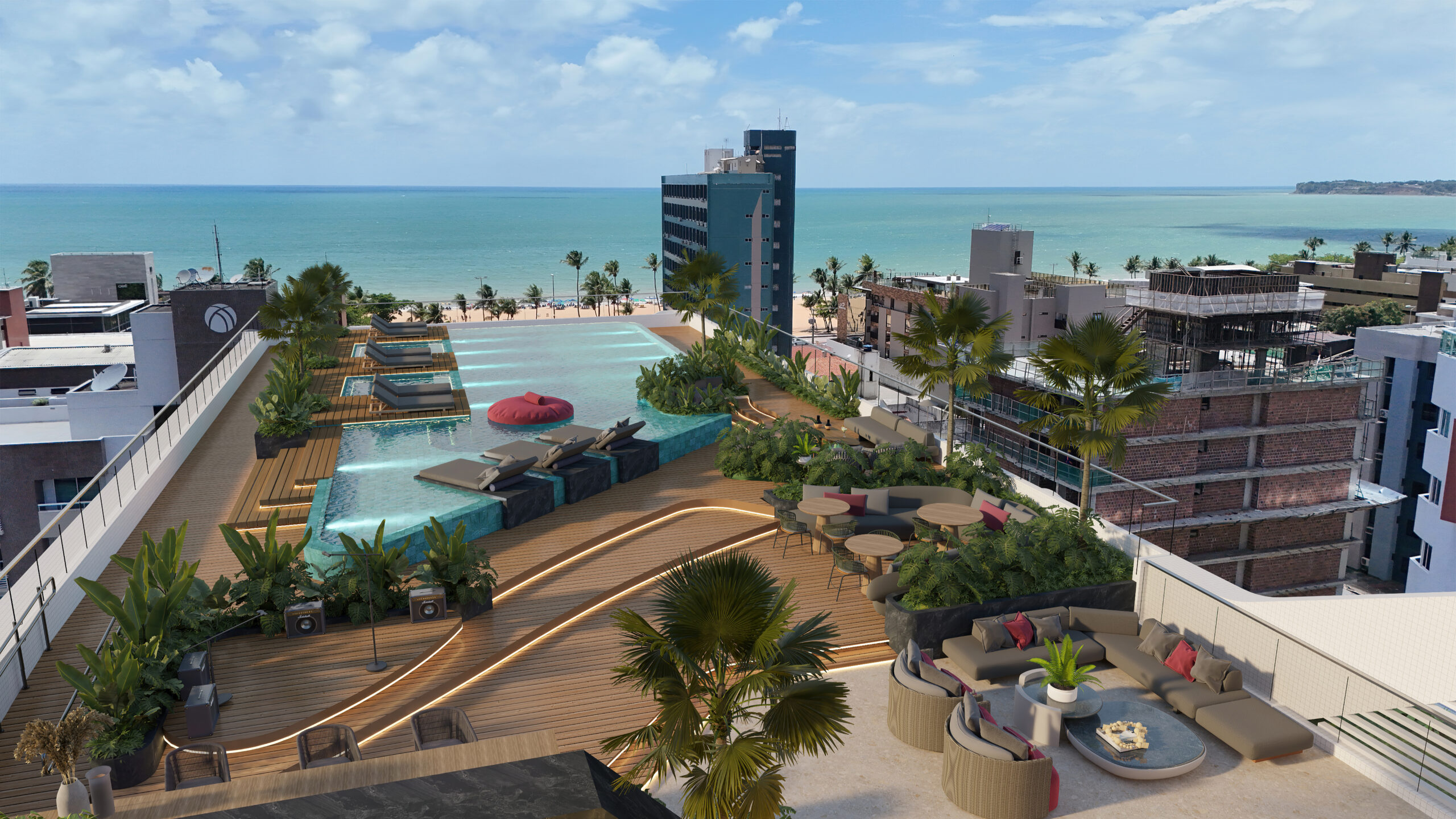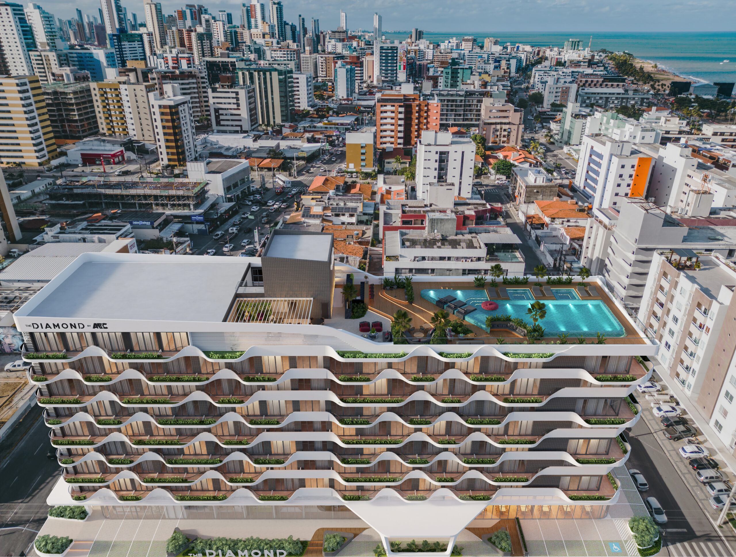 Seu desenho arquitetônico traduz a essência da sua localização – um encontro singular entre cidade e o mar. Sua fachada com traços ondulados evoca movimento, modernidade e fluidez, atributos essenciais para um ativo imobiliário de alta relevância. Um projeto arrojado e completamente inovador para João Pessoa.